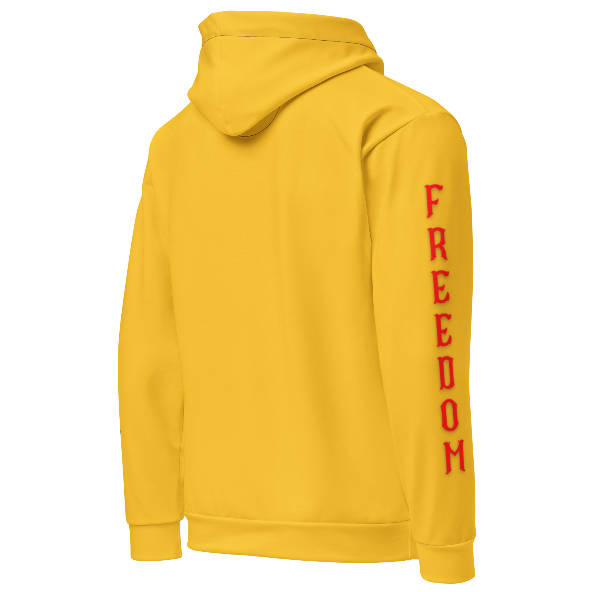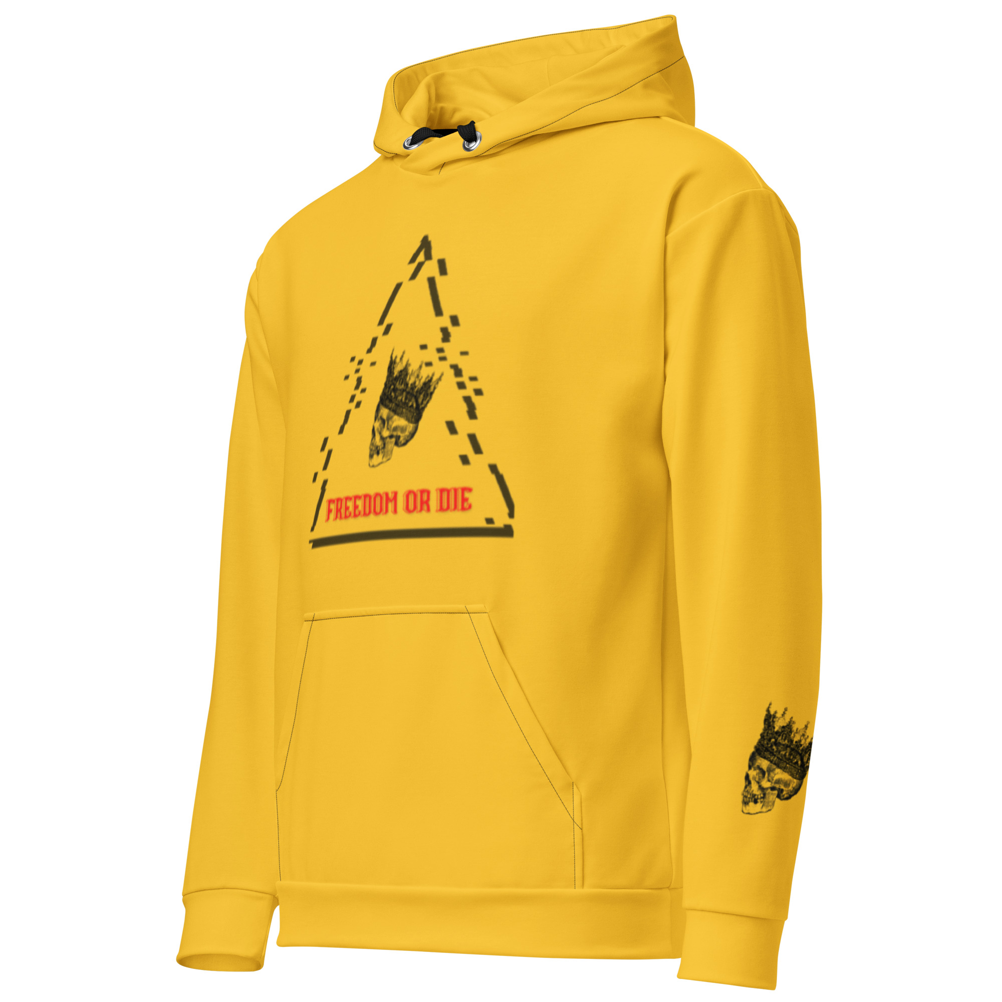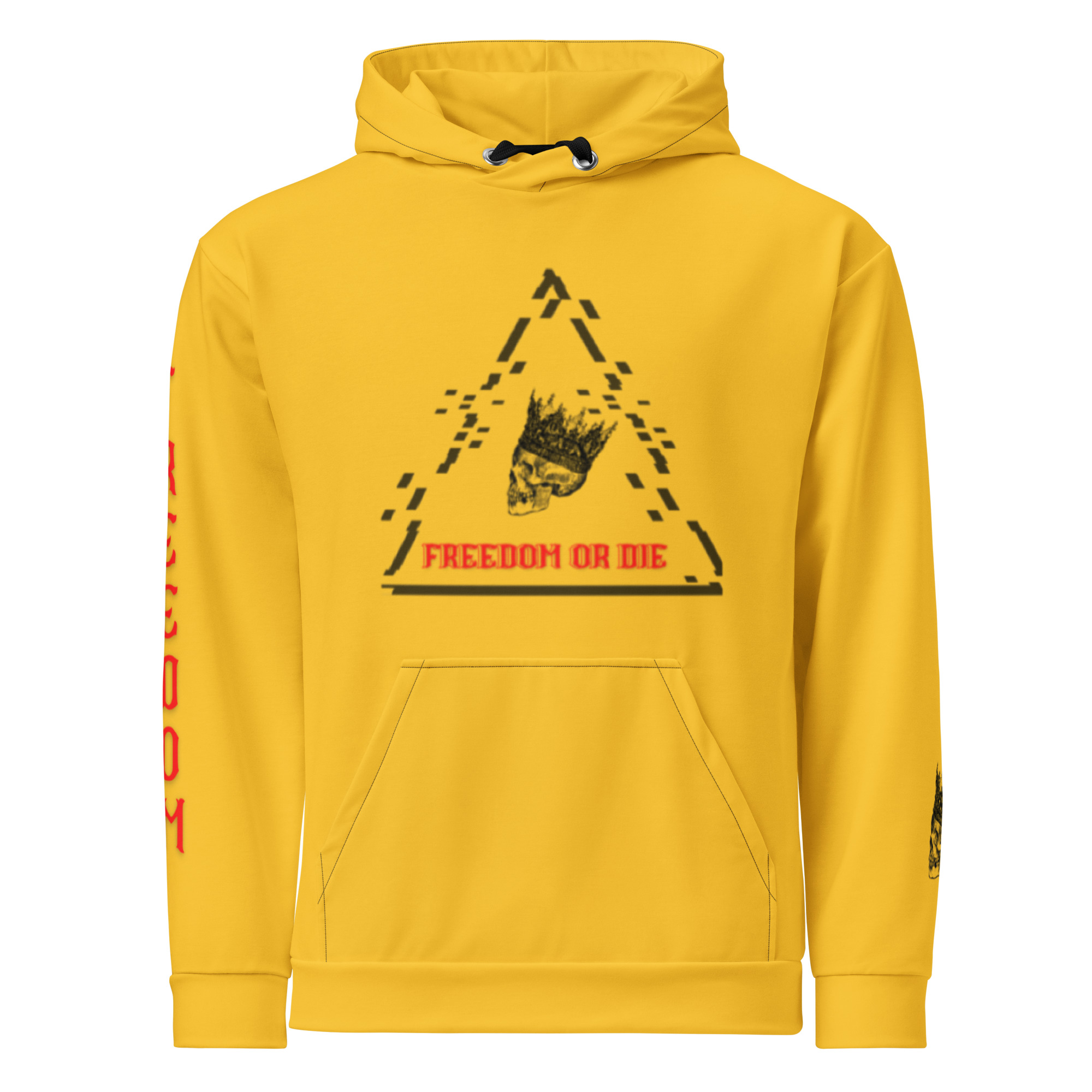Not just a hoodie—a statement. Glitched crown + skull front, FREEDOM down the sleeve, and art that speaks for itself. Live your truth or you’re not living at all. • 95% recycled polyester, 5% spandex • Fabric weight (may vary by 5%): 9.08 oz./yd.² (308 g/m²) • Soft cotton-feel fabric face • Brushed fleece fabric…